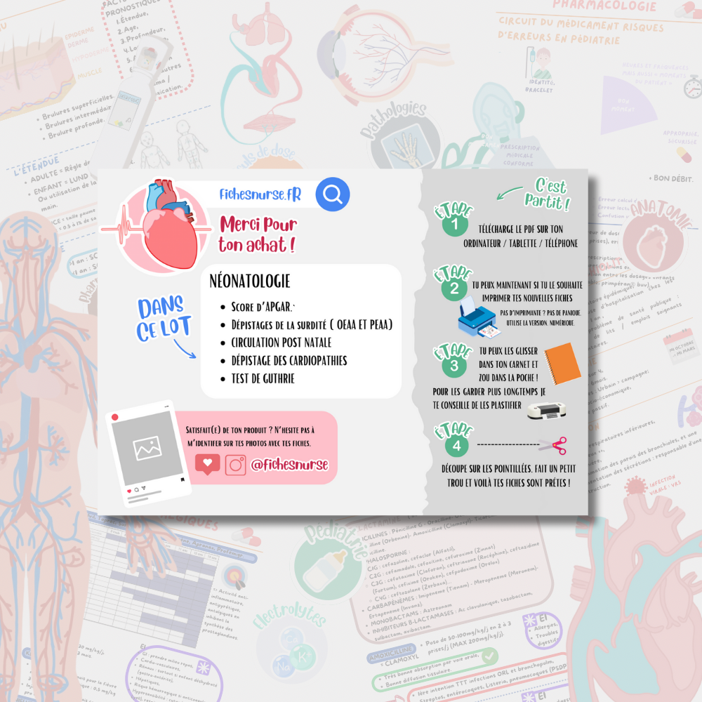 • Une fiche adaptée au service de néonatalogie ou en service de pédiatrie.